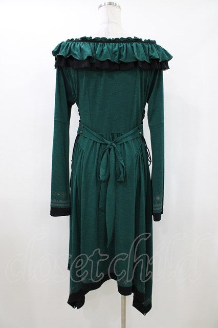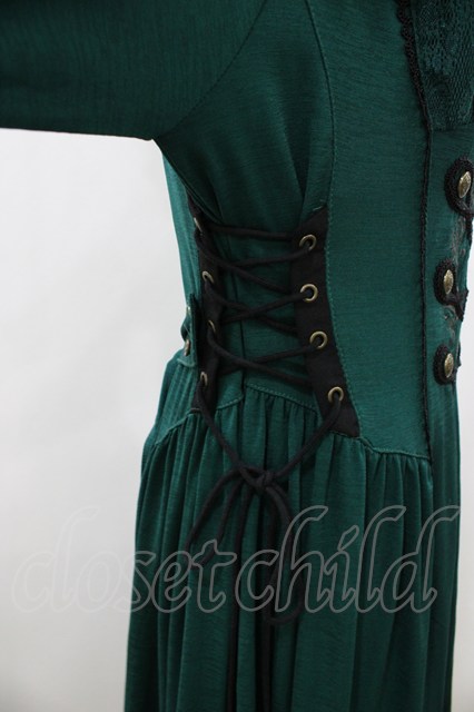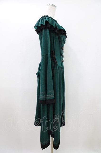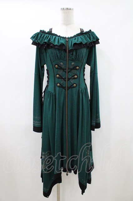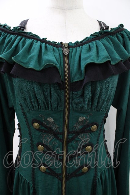 Ozz oneste / 薔薇刺繍ナポレオンZIPワンピース グリーン H-26-04-23-1017-OO-OP-KB-ZH