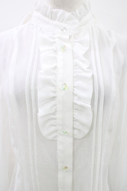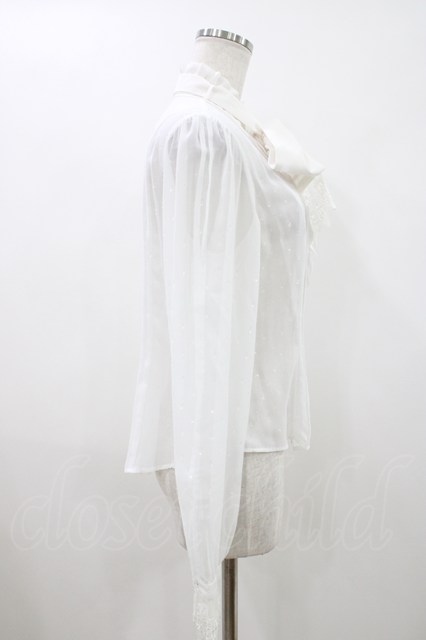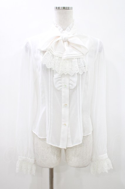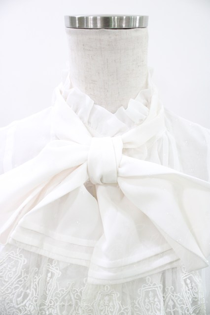 Moi-meme-Moitie / コフィンレースリボンブラウス 9号 ホワイト×ホワイト H-26-04-23-1023-MO-BL-KB-ZH