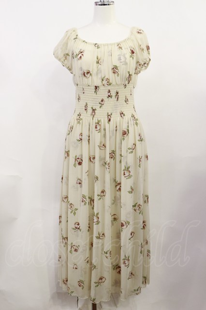 JESUS DIAMANTE / スモッキングパフマキシワンピース 38 バルドー薔薇 H-26-04-24-037-JE-OP-NS-ZH