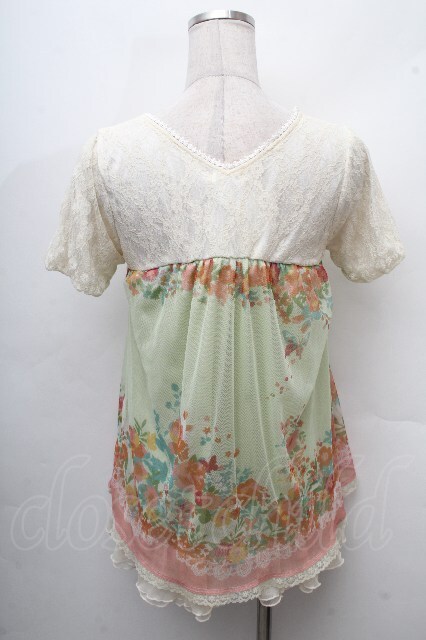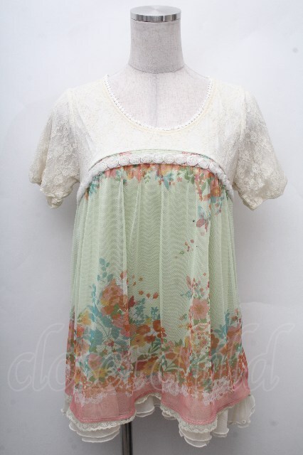 axes femme / チュールプリントチュニック オフxグリーン S-26-04-18-1023-AX-TO-HR-ZS [2100020000040127-S-26-04-18-1023-AX-TO-HR-ZS]