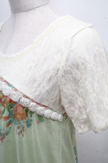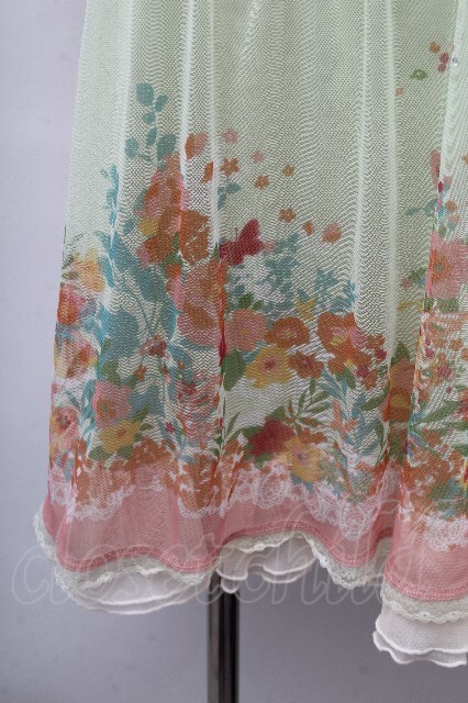 axes femme / チュールプリントチュニック オフxグリーン S-26-04-18-1023-AX-TO-HR-ZS
