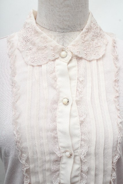 axes femme / レースカラーカットブラウス ピンク S-26-04-18-1029-AX-TO-HR-ZS