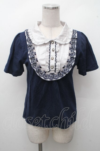 axes femme / レースブロッキングプルオーバー 紺 S-26-04-18-1036-AX-TO-HR-ZS