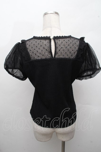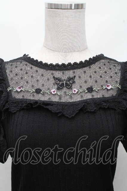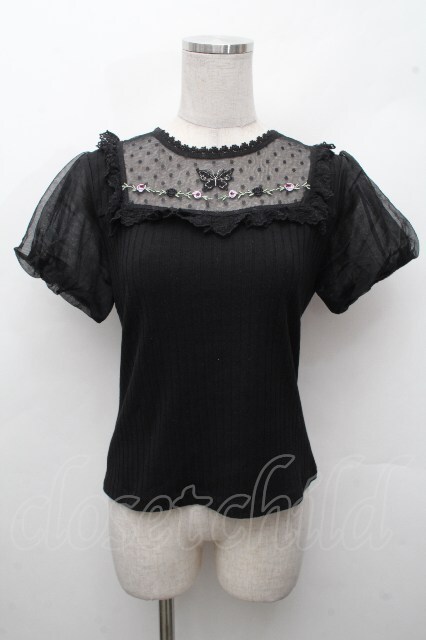 axes femme POETIQUE / 蝶ステッチ切替トップス 黒 S-26-04-18-1040-AX-TO-HR-ZS