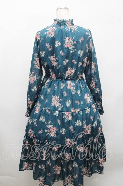 axes femme / 花柄ティアードワンピース グリーン S-26-04-18-1043-AX-OP-HR-ZS
