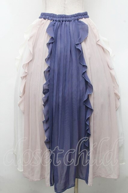 axes femme / 配色フリル×プリーツスカート オフxネイビー S-26-04-18-1058-AX-SK-HR-ZS