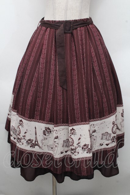axes femme / パリトラベルパネル柄スカート ブラウン S-26-04-18-1062-AX-SK-HR-ZS
