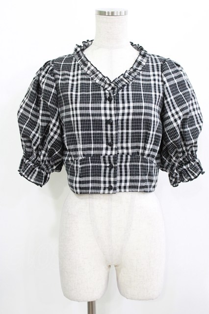 EATME / ボリュームスリーブブラウス Free ブラックチェック H-26-04-23-042-LO-BL-NS-ZH