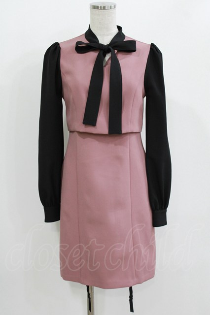 EATME / ボウタイバイカラーワンピース S ピンク/ブラック H-26-04-23-038-LO-OP-NS-ZH