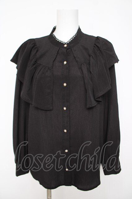 axes femme NOSTALGIE / 襟フリルブラウス 黒 Y-26-04-23-006-AX-BL-SZ-ZY