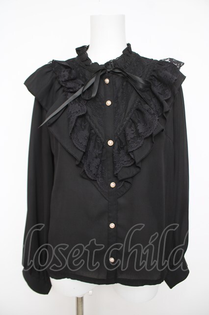 axes femme / アンティーク風フリルブラウス 黒 Y-26-04-23-007-AX-BL-SZ-ZY