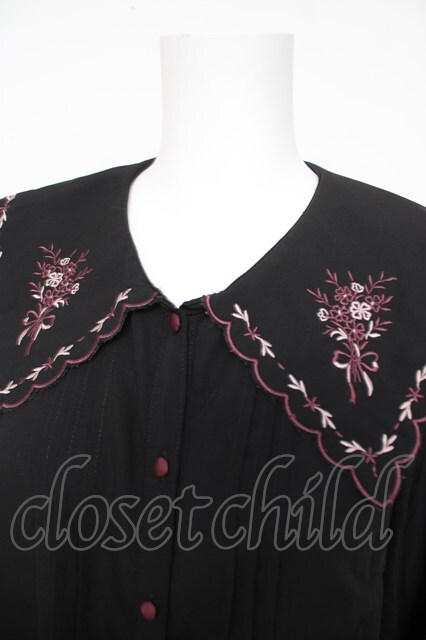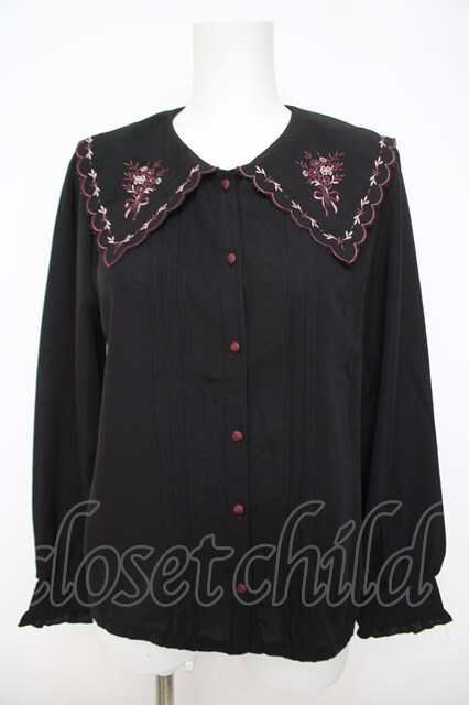 axes femme POETIQUE / フラワー刺繍スカラップ襟ブラウス 黒 Y-26-04-23-009-AX-BL-SZ-ZY