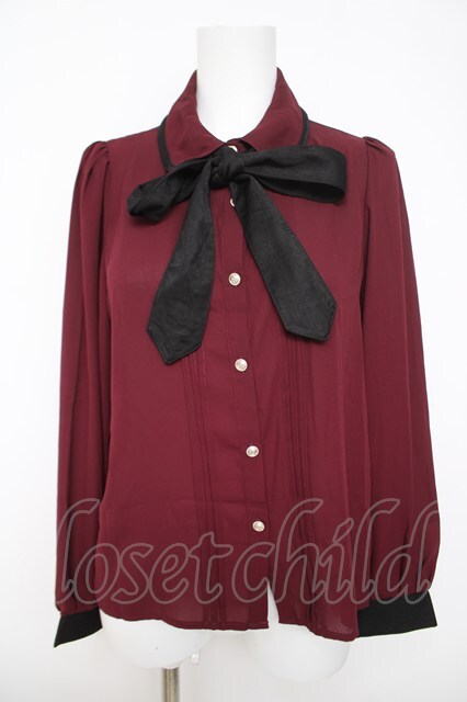 axes femme POETIQUE / 刺繍リボンタイブラウス ワイン Y-26-04-23-011-AX-BL-SZ-ZY