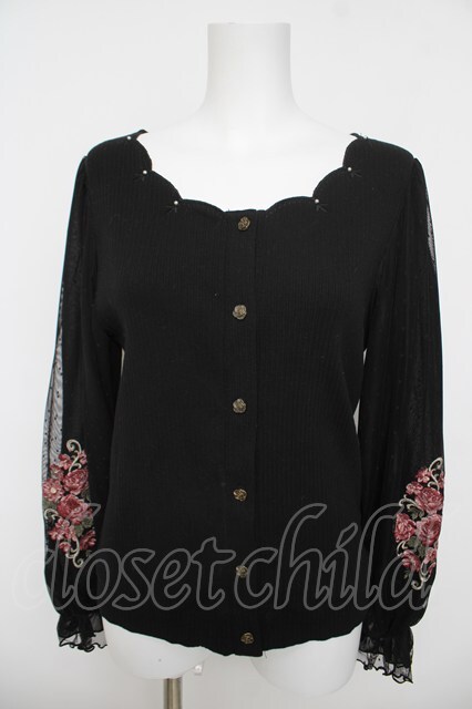 axes femme / ローズ刺繍カットカーディガン 黒 Y-26-04-23-022-AX-TO-SZ-ZY