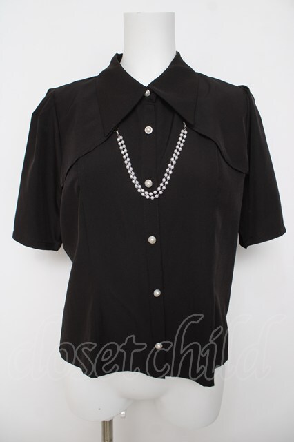 axes femme / パールチェーン半袖ブラウス 黒 Y-26-04-23-023-AX-BL-SZ-ZY [2100070000069107-Y-26-04-23-023-AX-BL-SZ-ZY]