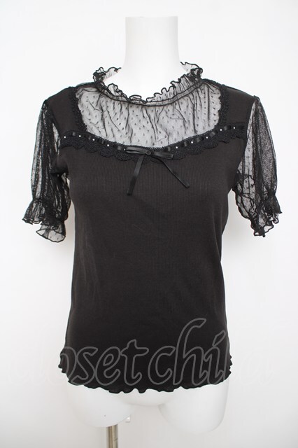 axes femme / ドットチュール半袖プルオーバー M 黒 Y-26-04-23-030-AX-TO-SZ-ZY