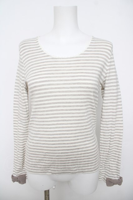 Emily Temple cute / 袖リボン付ボーダーカットソー オフ×グレー Y-26-04-23-041-ET-TO-SZ-ZY [2100070000064555-Y-26-04-23-041-ET-TO-SZ-ZY]