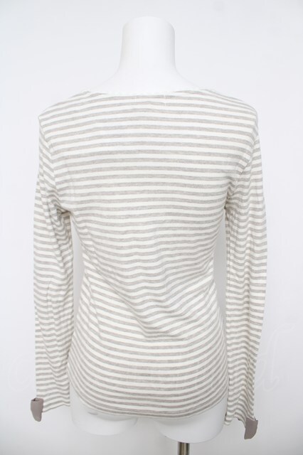 Emily Temple cute / 袖リボン付ボーダーカットソー オフ×グレー Y-26-04-23-041-ET-TO-SZ-ZY