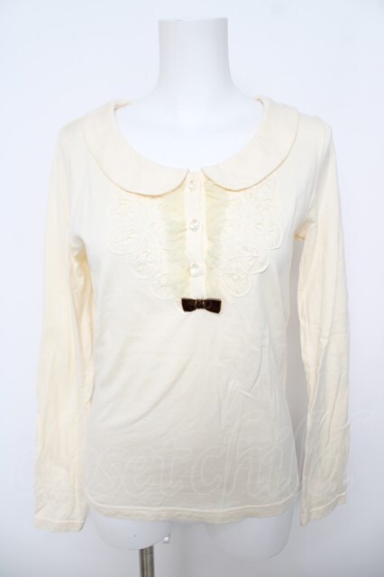 Emily Temple cute / 襟付きミニリボンカットソー M オフホワイト Y-26-04-23-049-ET-TO-SZ-ZY