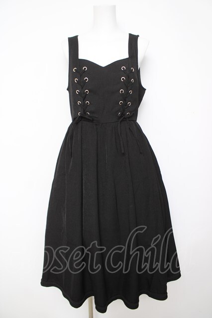 axes femme POETIQUE / レースアップロングワンピース 黒 Y-26-04-23-055-AX-OP-SZ-ZY