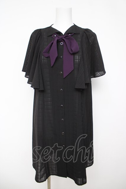 axes femme / シアーチェックケープ風ワンピース 黒 Y-26-04-23-058-AX-OP-SZ-ZY