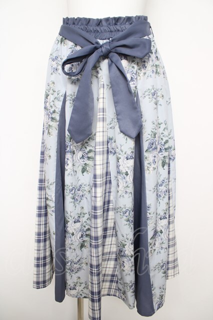 axes femme / 花柄×チェック柄切替スカート サックス Y-26-04-23-089-AX-SK-SZ-ZY [2100070000069098-Y-26-04-23-089-AX-SK-SZ-ZY]