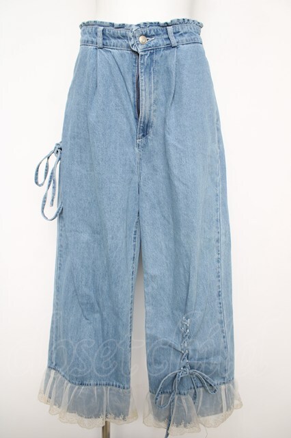 axes femme / 裾レースストレートデニムパンツ サックス Y-26-04-23-096-AX-PA-SZ-ZY