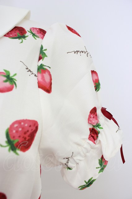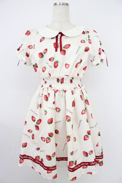 Ank Rouge / FancyStrawberryシャーリングワンピース M シロ×アカ T-26-04-19-006-CA-OP-OW-ZT
