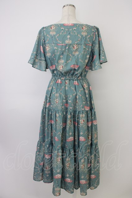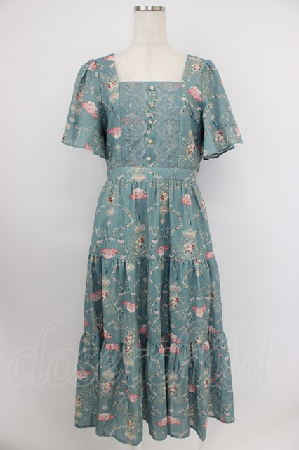 axes femme / レーヌローズ柄ワンピース グリーン T-26-04-19-012-AX-OP-IG-ZT