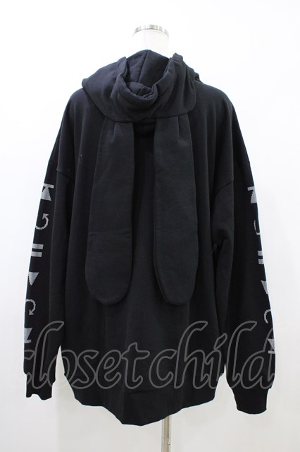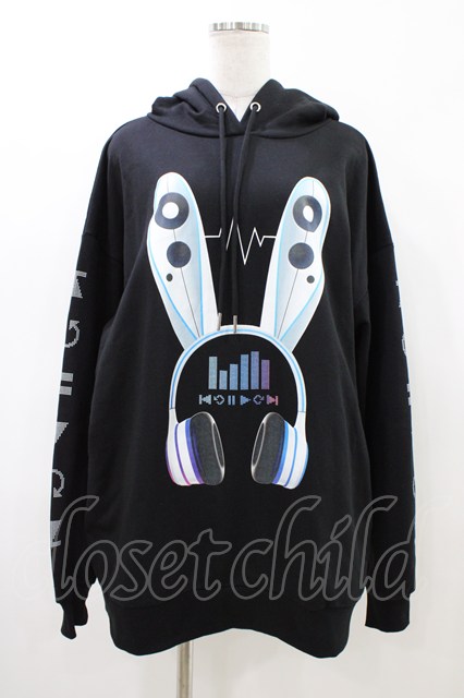 LISTEN FLAVOR / サイバーうさ耳ヘッドホンパーカー ブラック H-26-04-25-056-PU-TO-KB-ZH