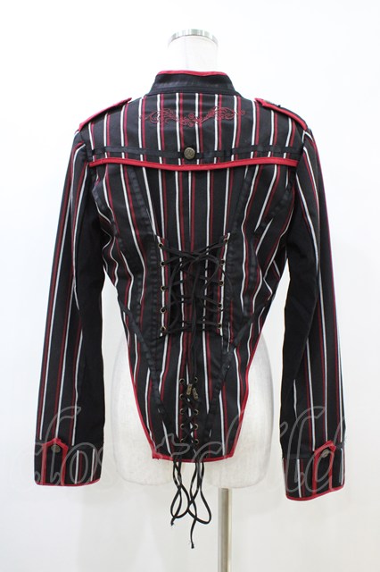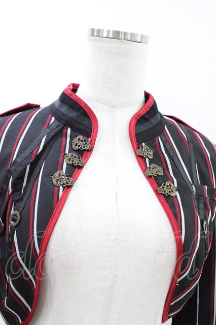 Ozz oneste / ストライプショートジャケット 黒 H-26-04-25-045-OO-JA-KB-ZH