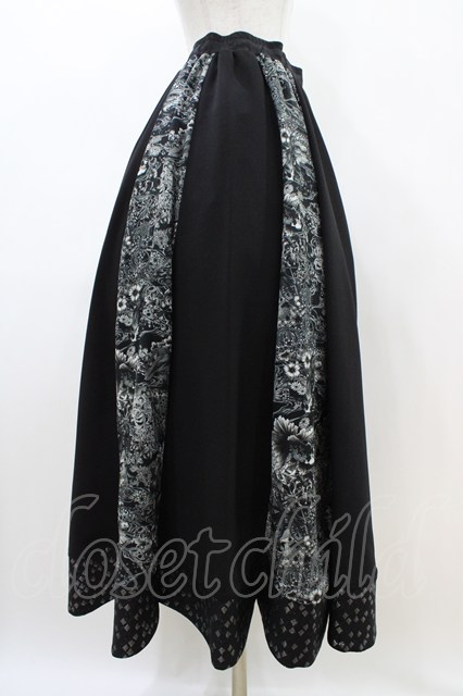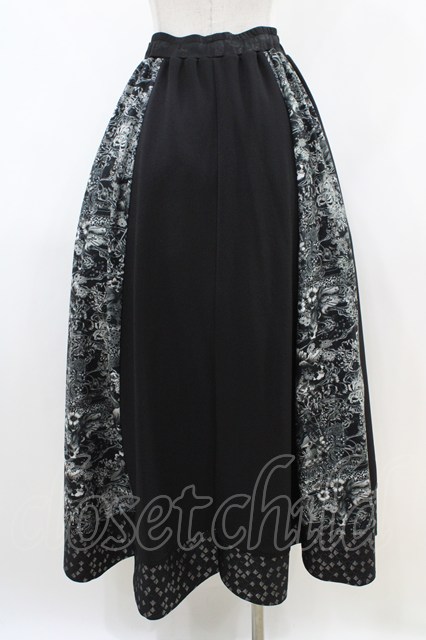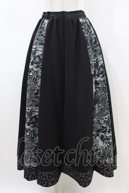 Qutie Frash / 和柄フレアロングスカート 黒 H-26-04-25-029-QU-SK-AK-ZH