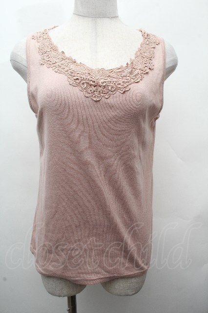 axes femme / レースモチーフタンクトップ ピンクベージュ S-26-04-19-011-AX-TO-HR-ZS