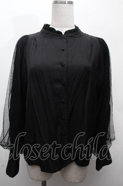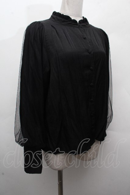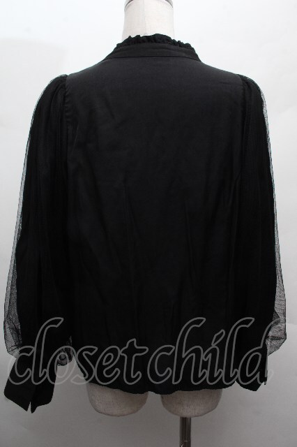 axes femme / 袖チュールブラウス 黒 S-26-04-19-032-AX-BL-HR-ZS [2100020000040126-S-26-04-19-032-AX-BL-HR-ZS]