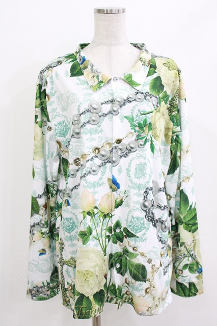 Triple fortune / 白の王国柄ブラウス 白 H-26-04-24-1038-EL-BL-KB-ZH