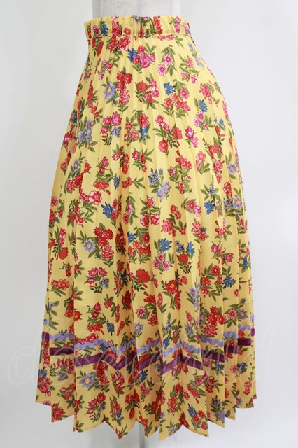 Jane Marple Dans Le Salon / Flowers of Jouy double accordion skirt M マスタード H-26-04-24-1012-JM-SK-KB-ZH