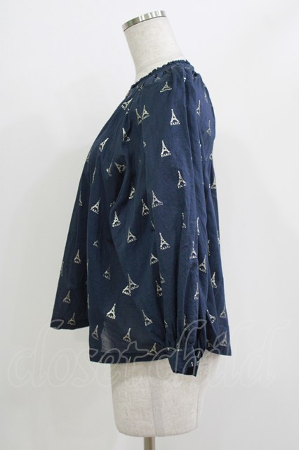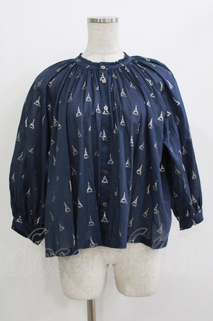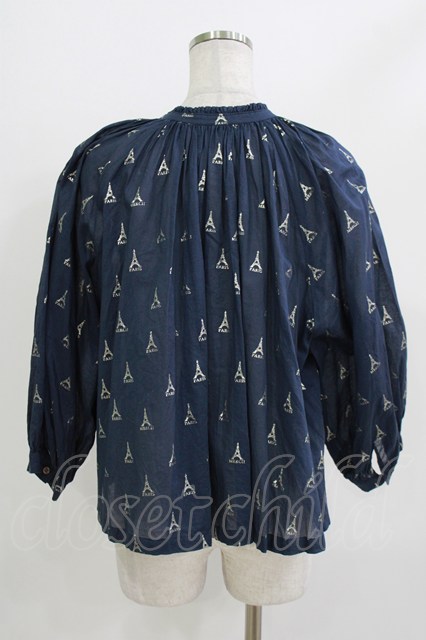Jane Marple Dans Le Salon / LA TOUR EIFFELケープブラウス ネイビー×ホワイトゴールド H-26-04-24-1041-JM-BL-KB-ZH