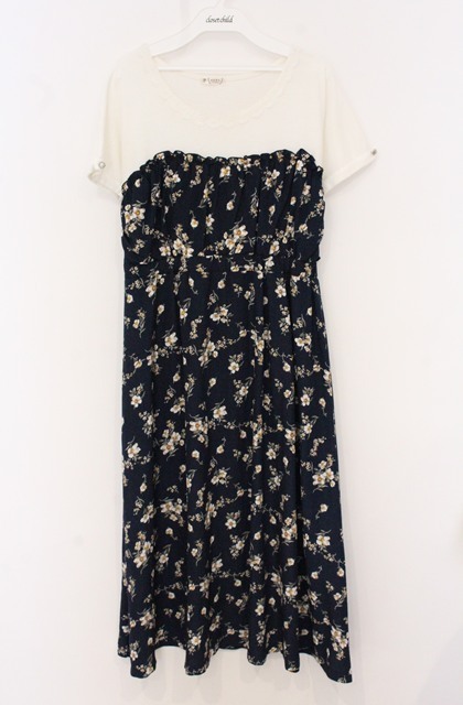 axes femme / ビスチェ切替ドッキングワンピース シロ×ネイビー O-26-04-19-038-AX-OP-IG-OS