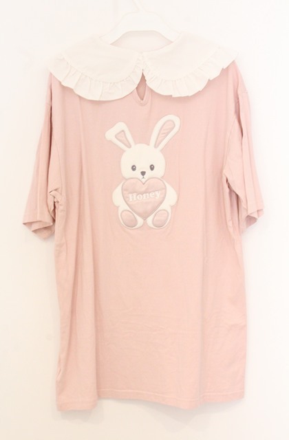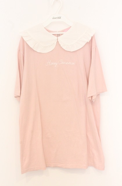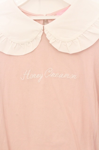 Honey Cinnamon / フリル襟ロゴTシャツ ピンク×シロ O-26-04-19-021-LO-TO-IG-OS