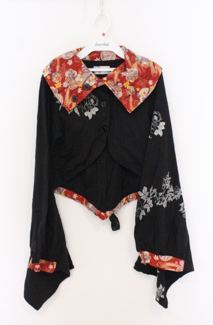 gouk / 和柄切り替え着物風カーディガン ブラック×レッド O-26-04-19-025-GO-TO-IG-OS [2100080000080263-O-26-04-19-025-GO-TO-IG-OS]