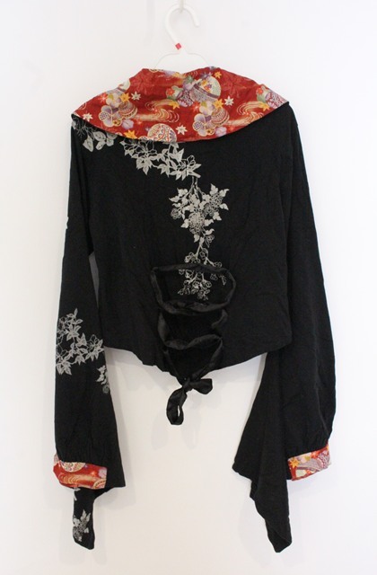 gouk / 和柄切り替え着物風カーディガン ブラック×レッド O-26-04-19-025-GO-TO-IG-OS