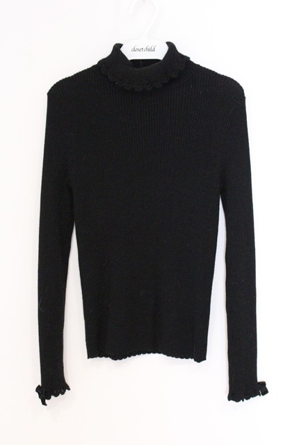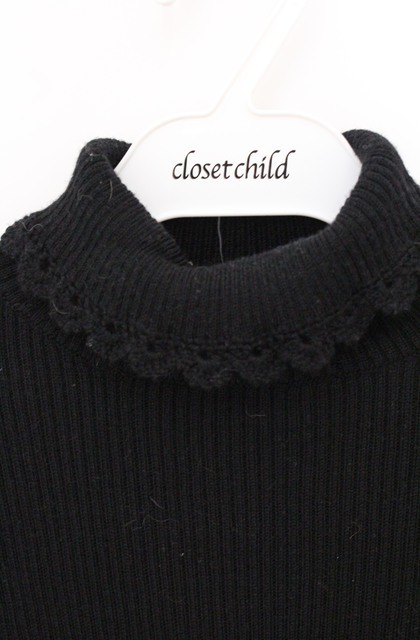 Emily Temple cute / レースフリルタートルニット M クロ O-26-04-19-056-ET-TO-OW-OS