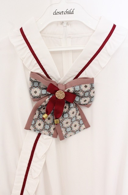 Amavel / 月夜の狐と寒椿 和風ブラウス シロ×ワイン O-26-04-19-037-CA-BL-IG-OS [2100080000080257-O-26-04-19-037-CA-BL-IG-OS]