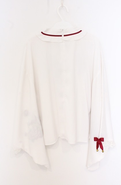 Amavel / 月夜の狐と寒椿 和風ブラウス シロ×ワイン O-26-04-19-037-CA-BL-IG-OS