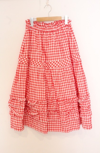 Jane Marple / Shirring gingham tiered skirt スカート M アカ O-26-04-19-060-JM-SK-OW-OS