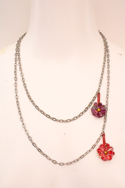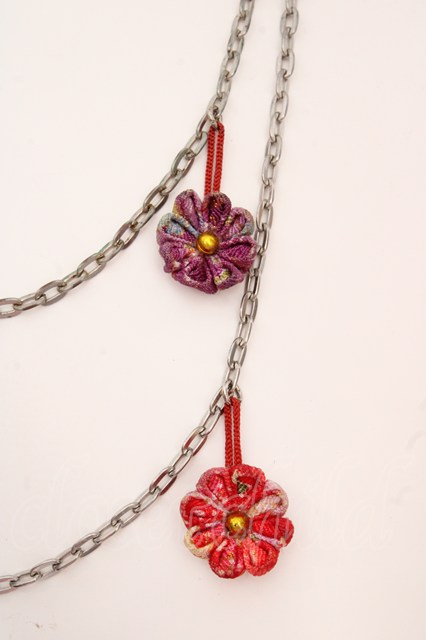 gouk / ちりめん細工花2連ネックレス シルバー×レッド×パープル O-26-04-20-075-GO-AC-IG-OS