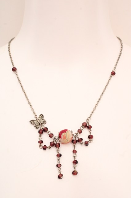 gouk / 蝶モチーフネックレス シルバー×ボルドー系 O-26-04-20-080-GO-AC-IG-OS