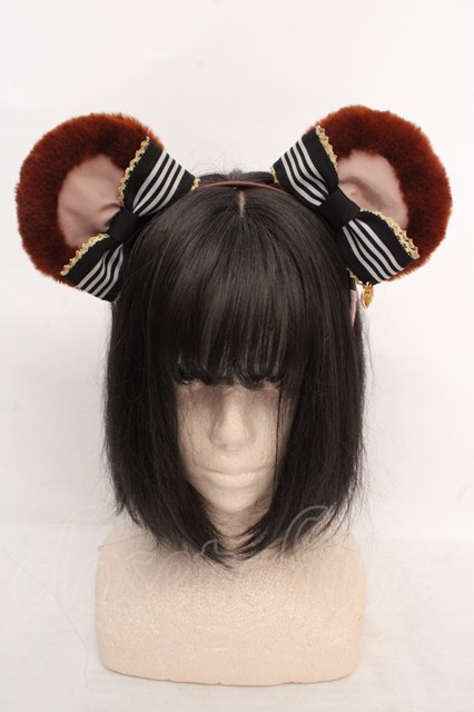 Angelic Pretty / Bearストライプリボンカチューシャ ブラウン×クロ O-26-04-20-023-AP-AC-IG-OS