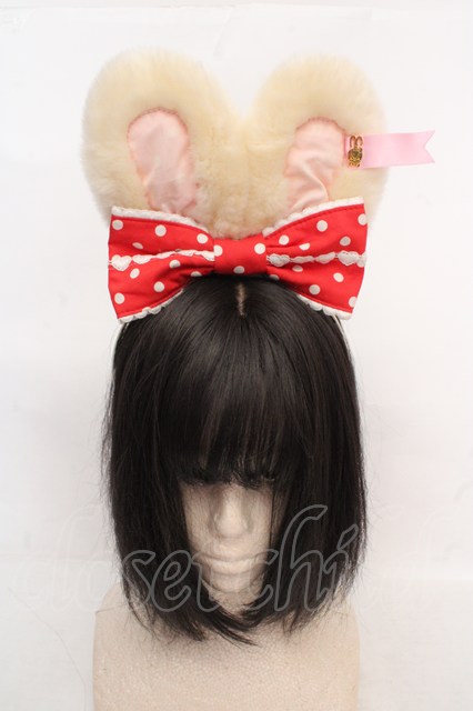 Angelic Pretty / Lovely Dotリリカルバニーカチューシャ オフシロ×アカ O-26-04-20-022-AP-AC-IG-OS [2100080000079974-O-26-04-20-022-AP-AC-IG-OS]