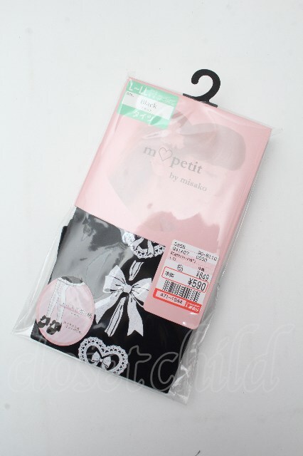m petit by misako / ECAMタイツハートリボン L~LL 黒x白 S-26-04-20-1002-LO-AC-HR-ZS [2100020000040222-S-26-04-20-1002-LO-AC-HR-ZS]